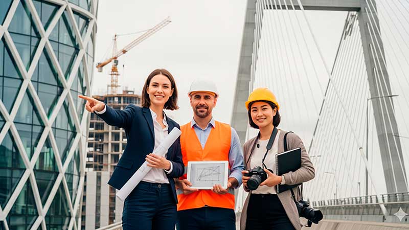Engenheiros, arquitetos e profissional autônomo em foto, representando o público-alvo do guia sobre obrigações fiscais.